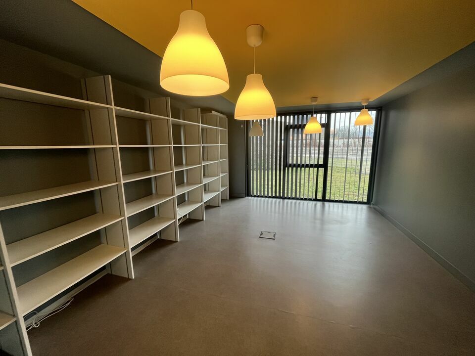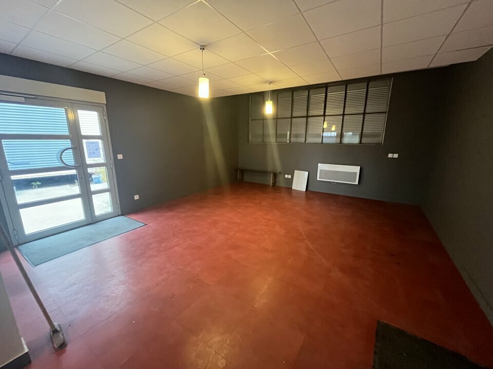 100 m² de bureaux à l'avant du bâtiment totalement vitré avec 1 open space et 2 grands bureaux individuels et équipés de la climatisation réversible